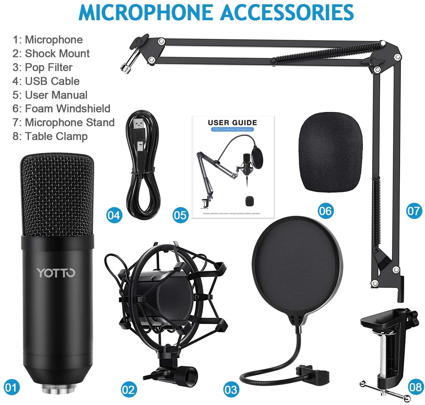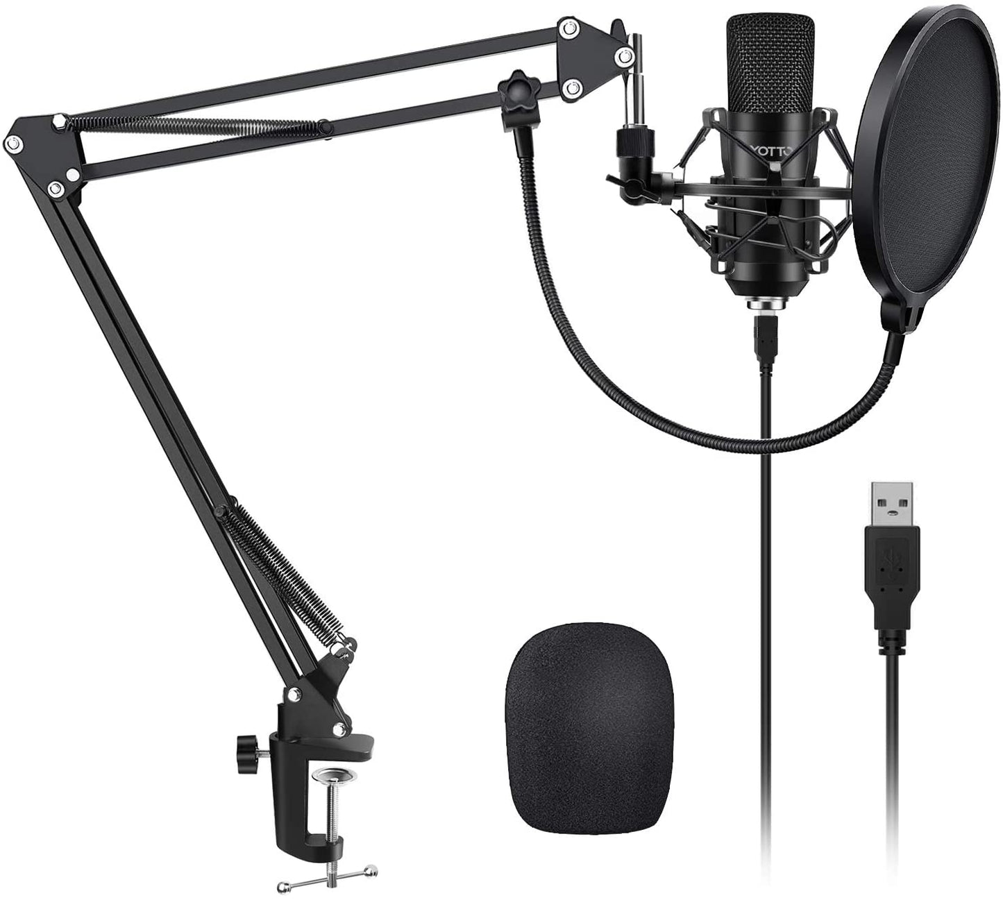 192KHz/24bit Plug and Play Professional Studio Podcast Microphone with Adjustable Microphone Stand Suspension Scissor Boom Arm, Pop Filter, Shock Mount